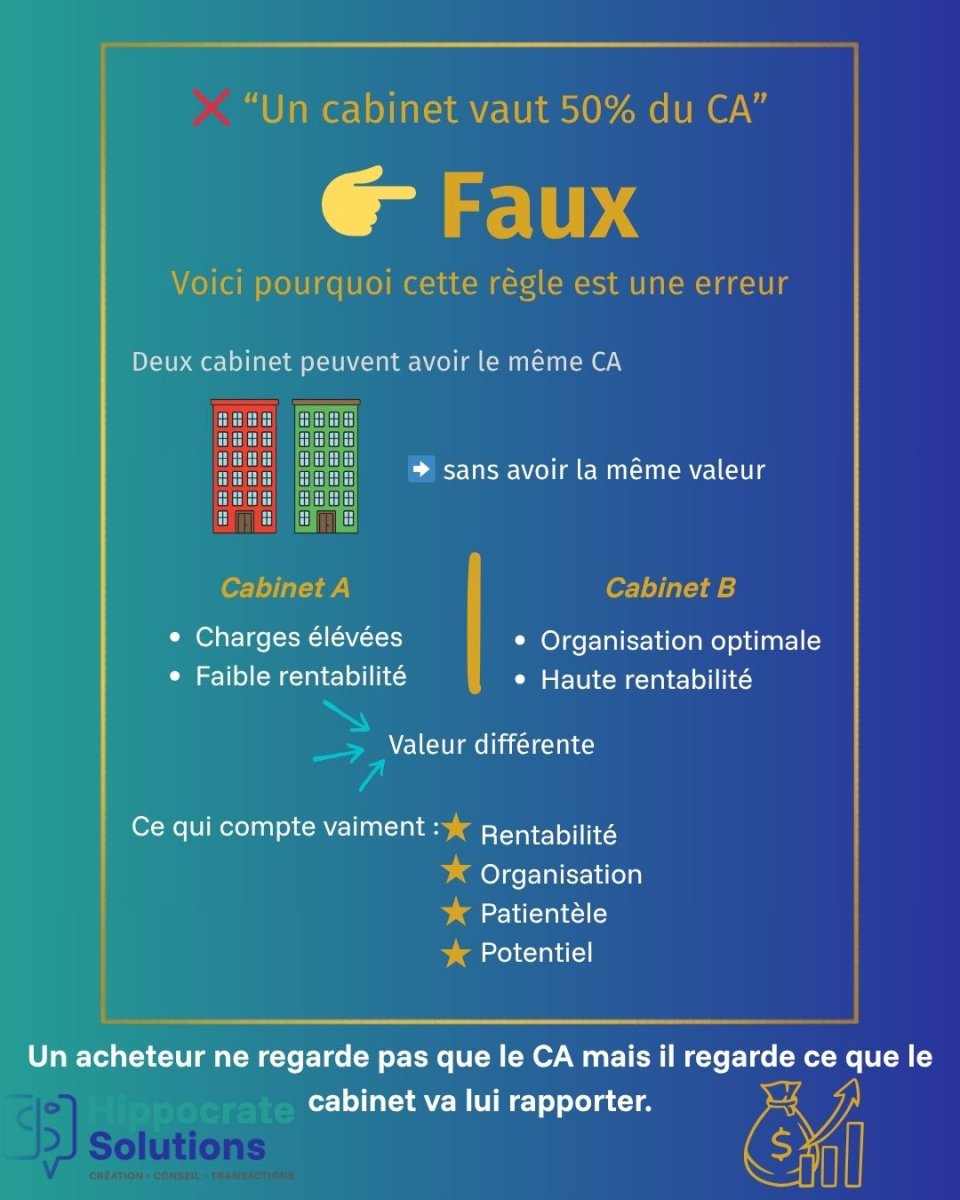 La valorisation repose avant tout sur ce que le cabinet génère réellement comme revenus pour son repreneur.